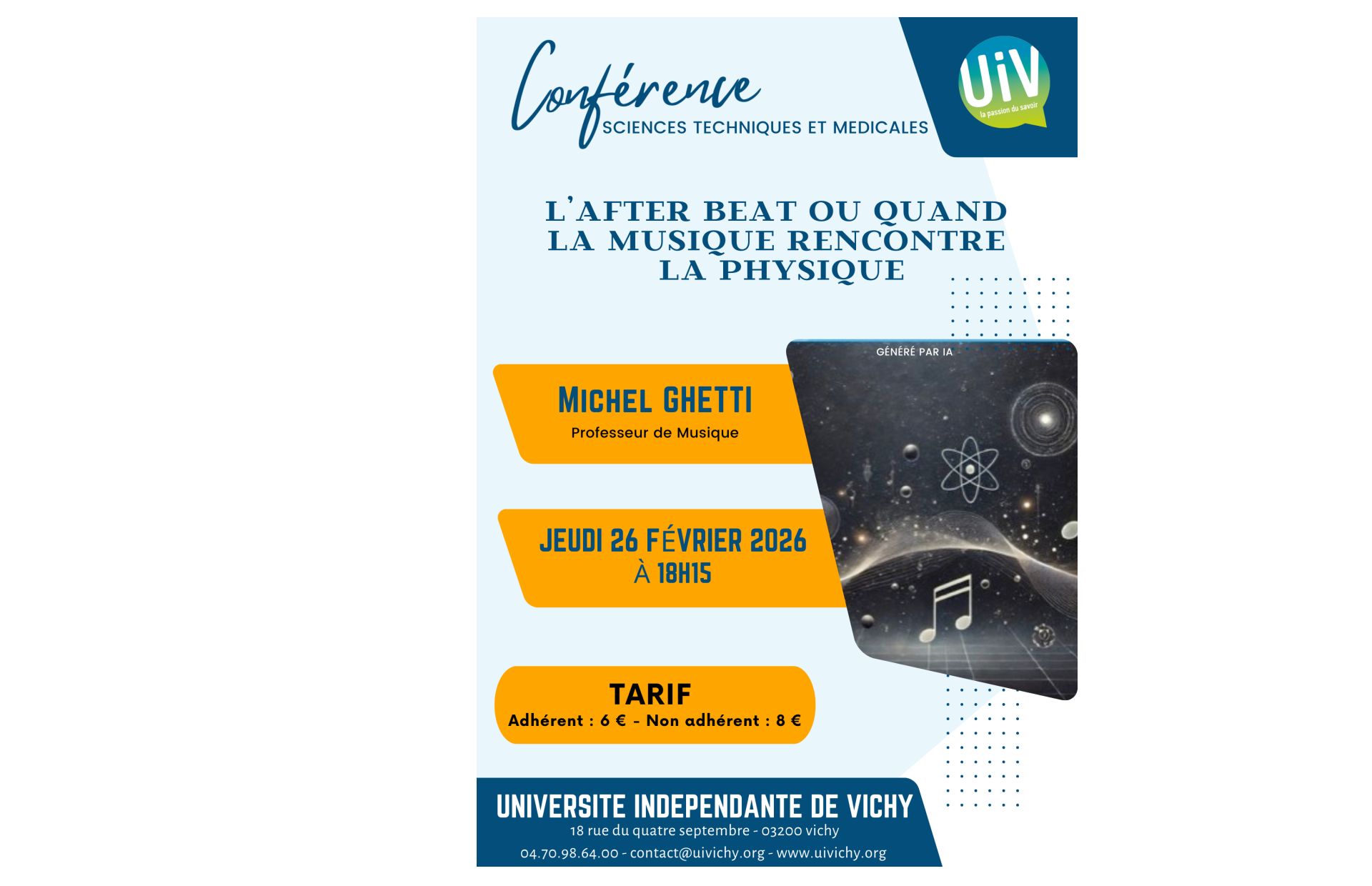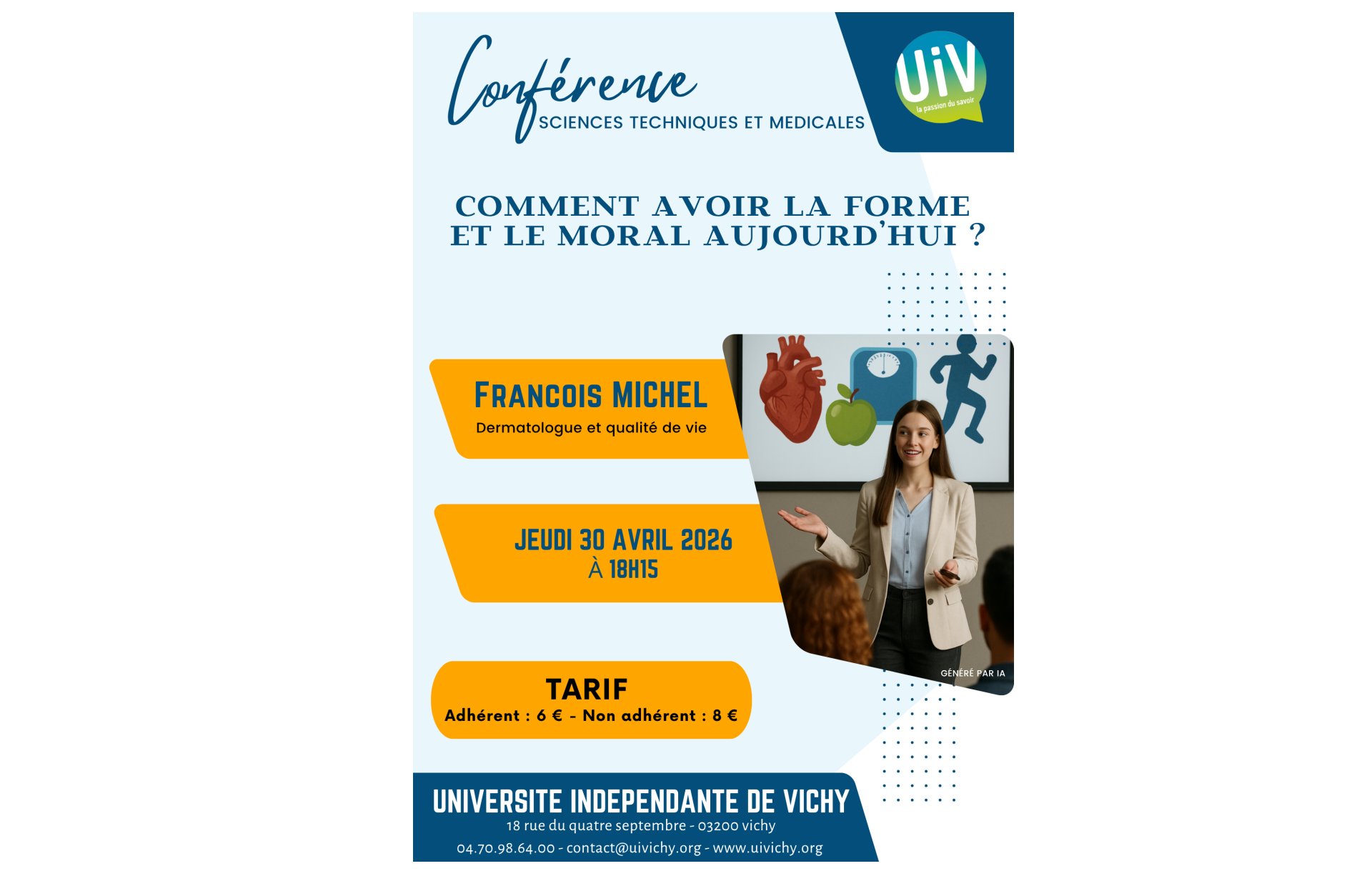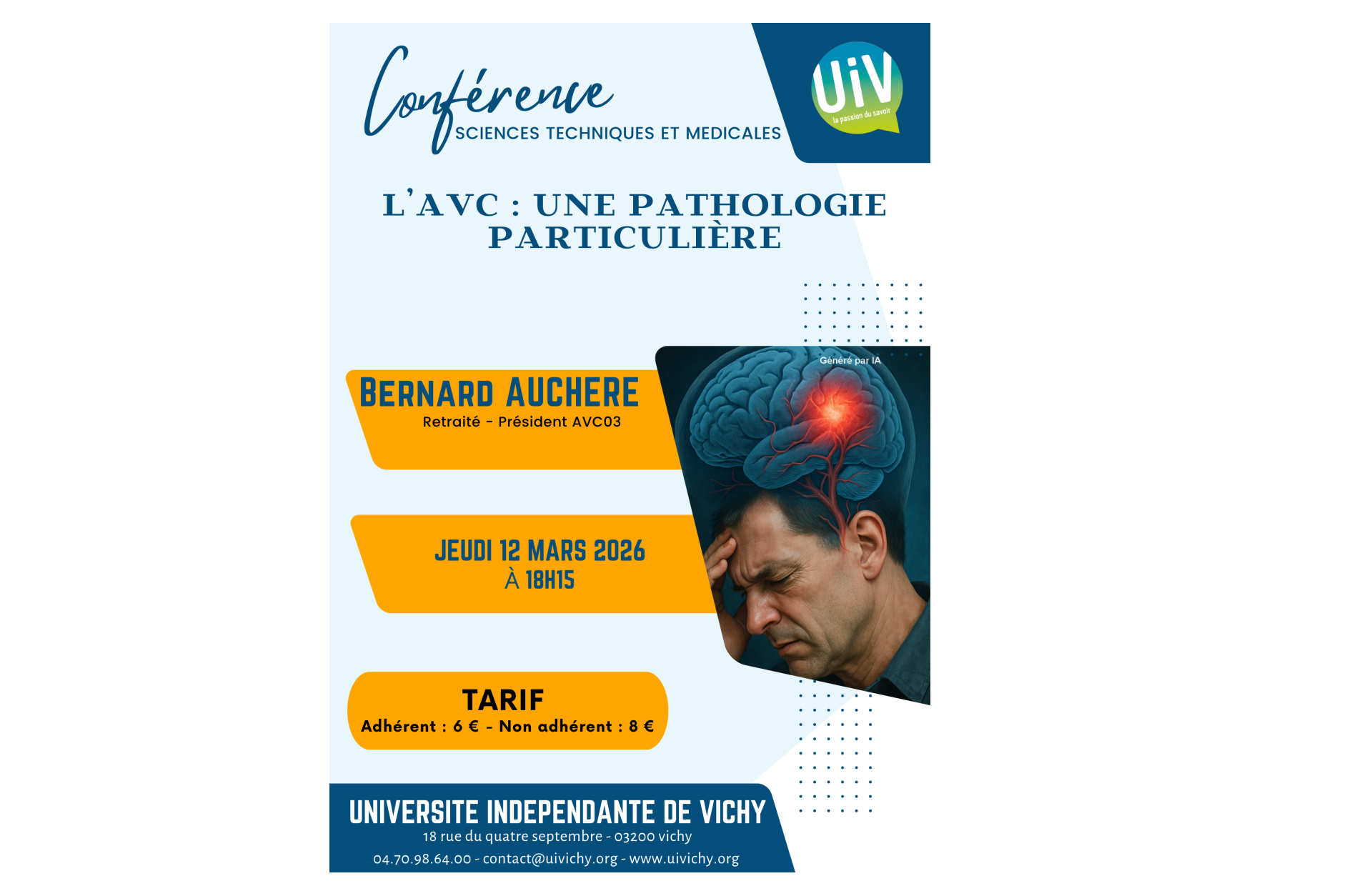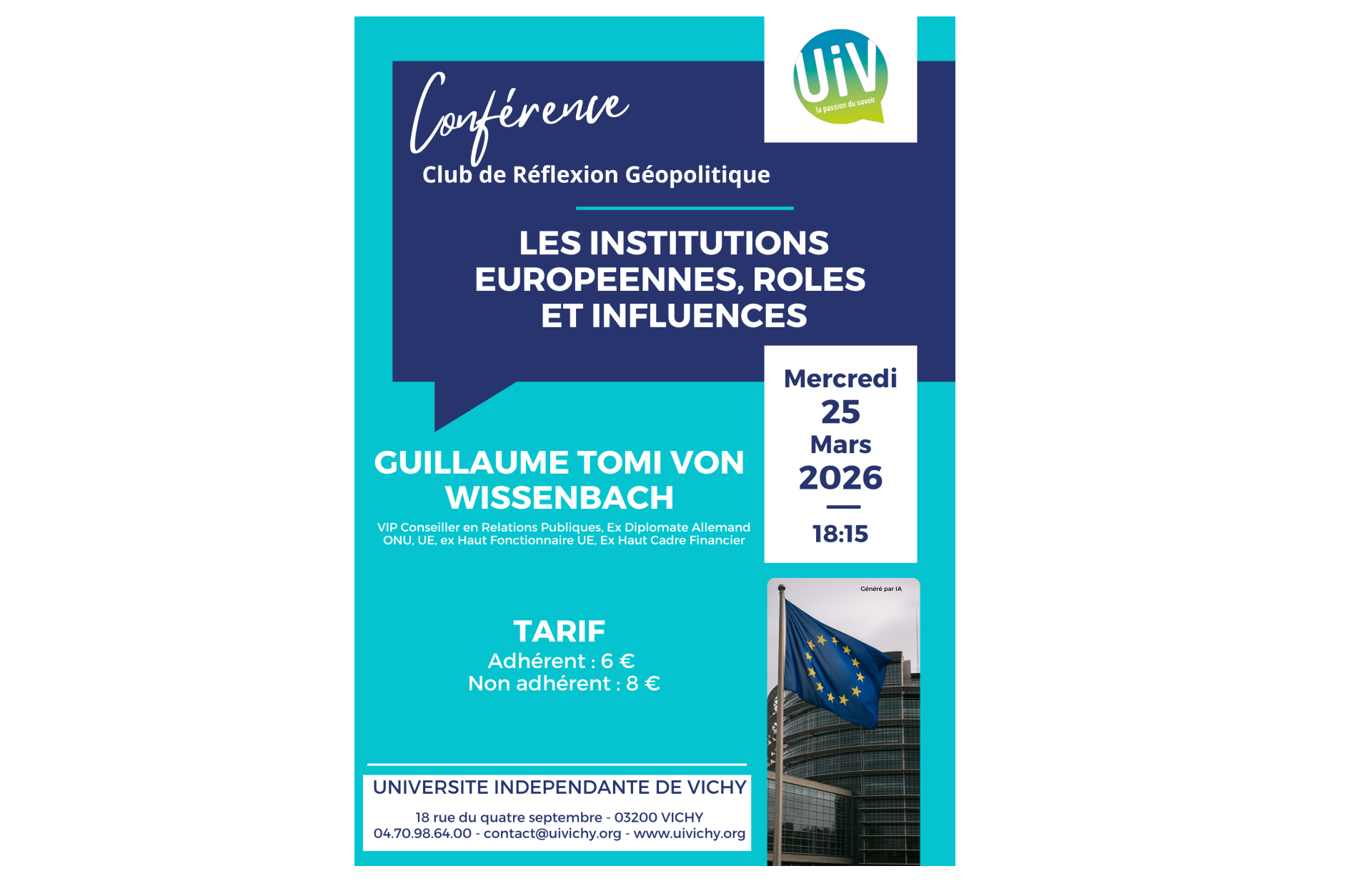 Forte de ses 1400 adhérents, l’Université Indépendante de Vichy (U.I.V.) est une association culturelle qui a pour but de faciliter, encourager, dynamiser, partager l’accès à la connaissance pour tous !