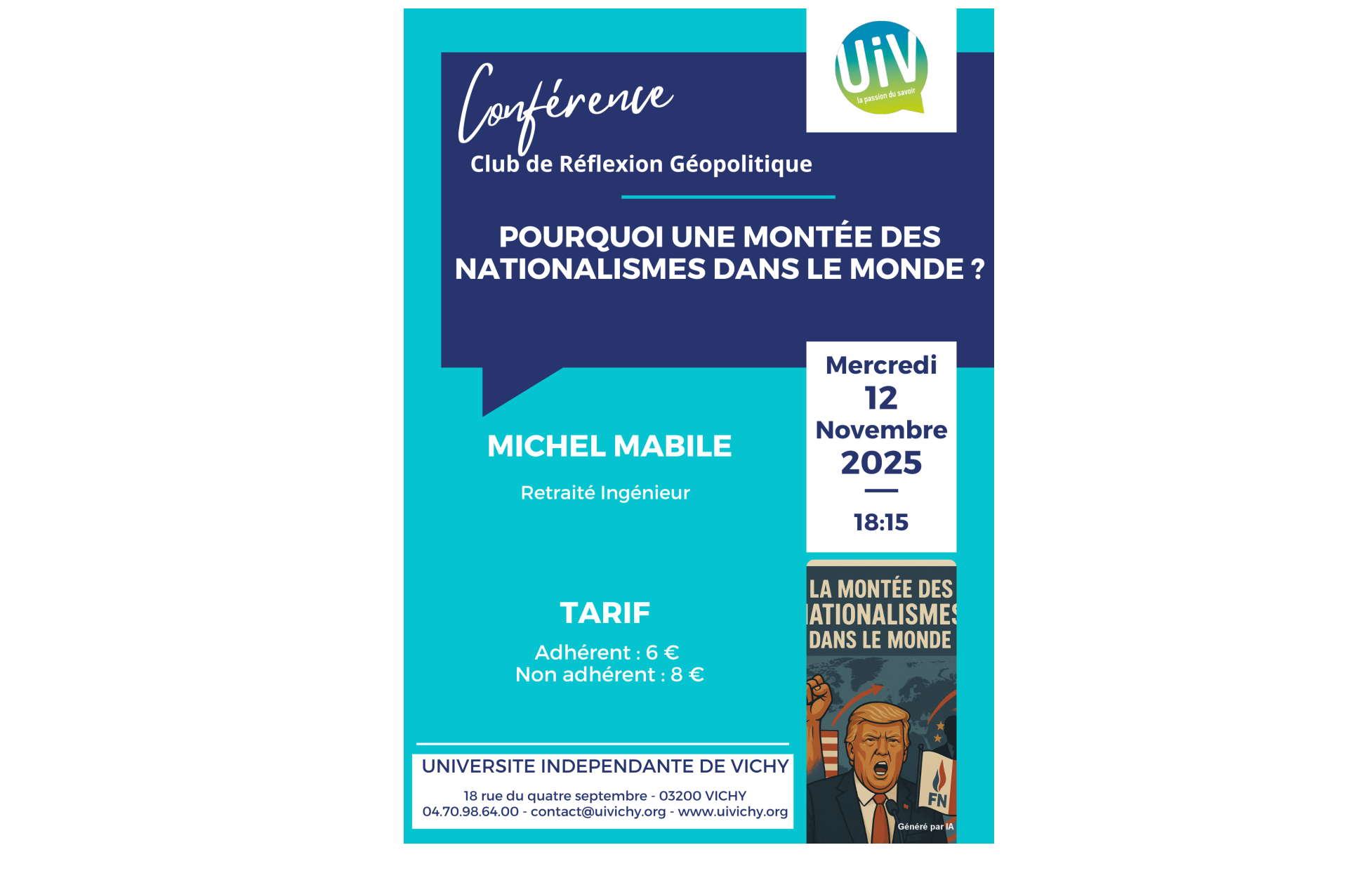Forte de ses 1400 adhérents, l’Université Indépendante de Vichy (U.I.V.) est une association culturelle qui a pour but de faciliter, encourager, dynamiser, partager l’accès à la connaissance pour tous !